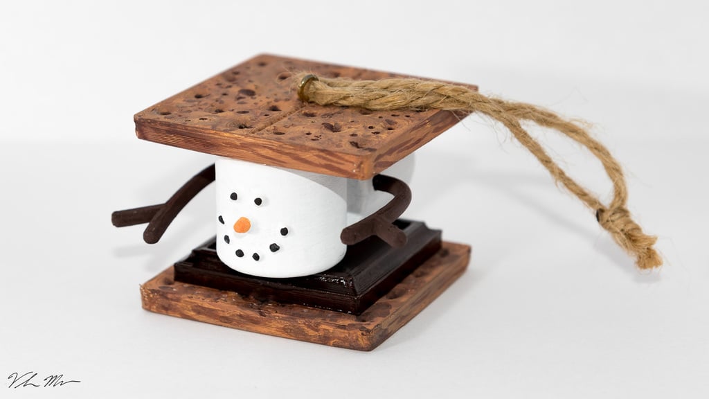 This year, let’s print this adorable Marshmallow S'mores Christmas Ornament designed by @Desktop_Makes and hang it on your Christmas tree! You can color the model, paint the texture of the wood grain, and hang twine from the little rings reserved for it, and you'll have this classy and adorable marshmallow decoration!