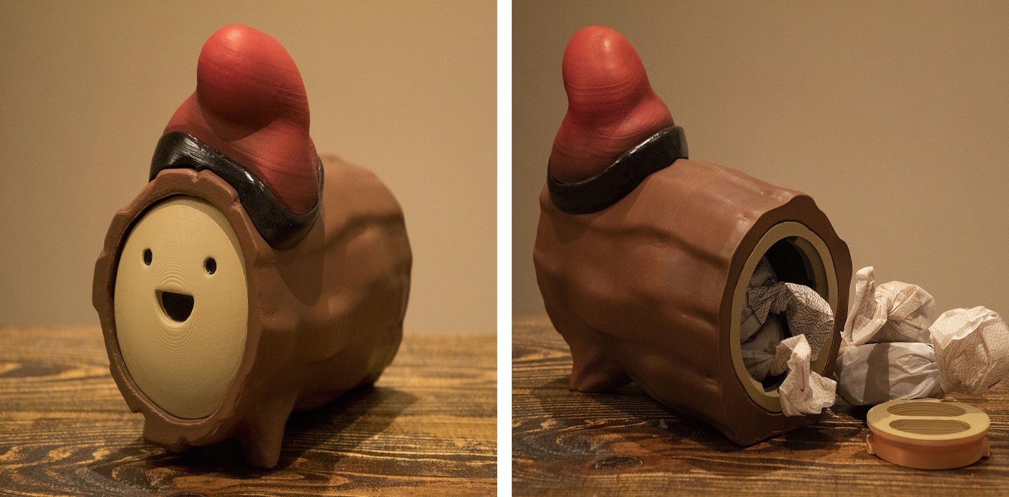This is the Christmas Log or "Tió de Nadal" in Catalan. It's a very beloved character in the Catalan mythology. @averok designed this model and wanted to share his traditions. In Catalonia, Tió de Nadal is filled with sweets and novelties. On Christmas Eve and Christmas Day, the classic Tió song is sung in the house, and children hit the log with a stick to see what’s hidden inside.