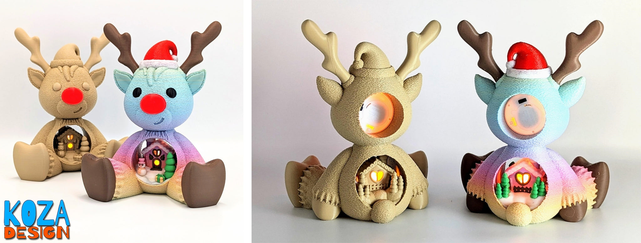 This is Rudolph, the Christmas Reindeer designed by @KOZA, modeled in the usual cute and gentle style. The reindeer are very festive with a red Santa hat and a red shiny nose. The most unique thing is that the reindeer has a gingerbread house in its stomach, surrounded by Christmas trees and snowmen, which is more in line with the Christmas in winter. The base of the model is also reserved for LED, which can be placed to light up the model. This is a very delicate and special decoration, let it be your most eye-catching one in your house!