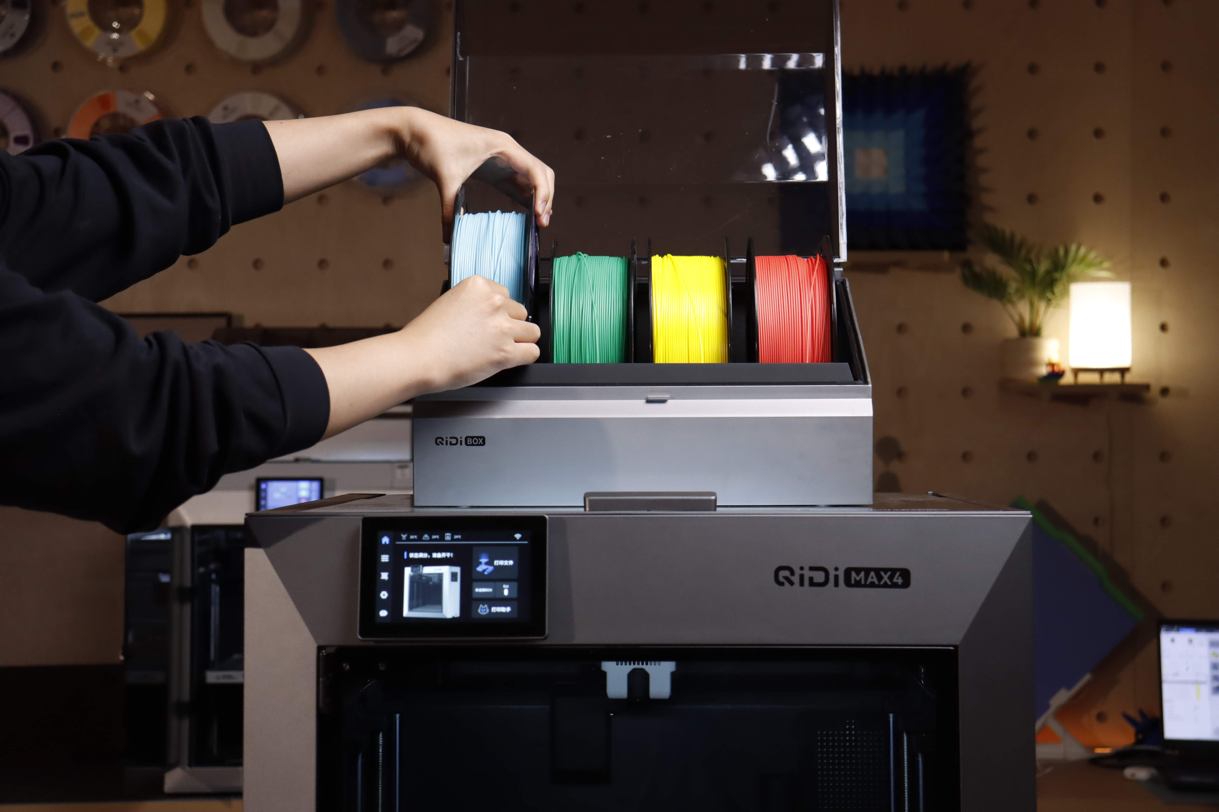 The QIDI Box features a built-in chamber heating up to 65°C, gently softening advanced filaments for smooth, vibrant multi-color prints every time