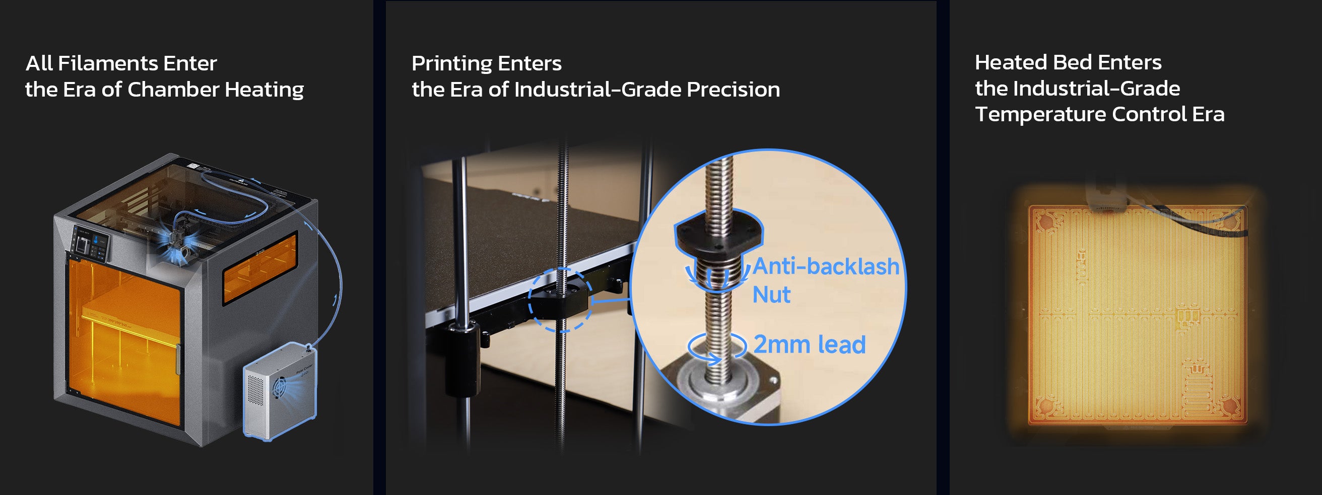 With The Shortest Z Travel in Its Class, 2 mm lead Z-axis screw — delivering unprecedented precision. With the new anti-backlash nut, every layer stays perfectly aligned